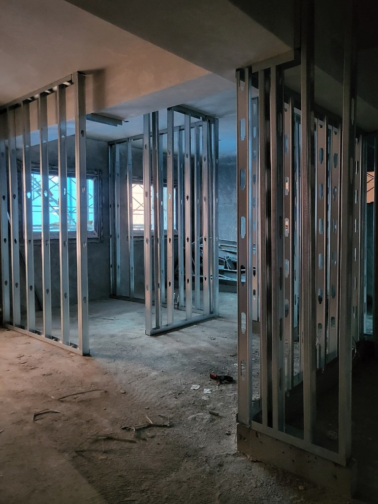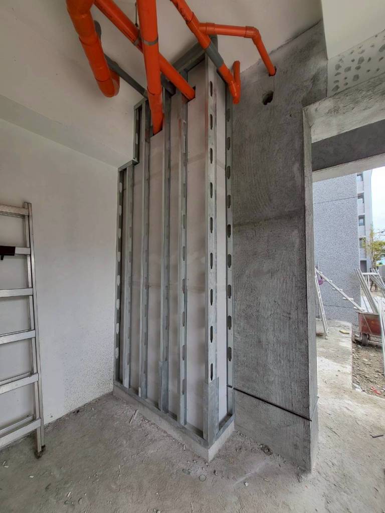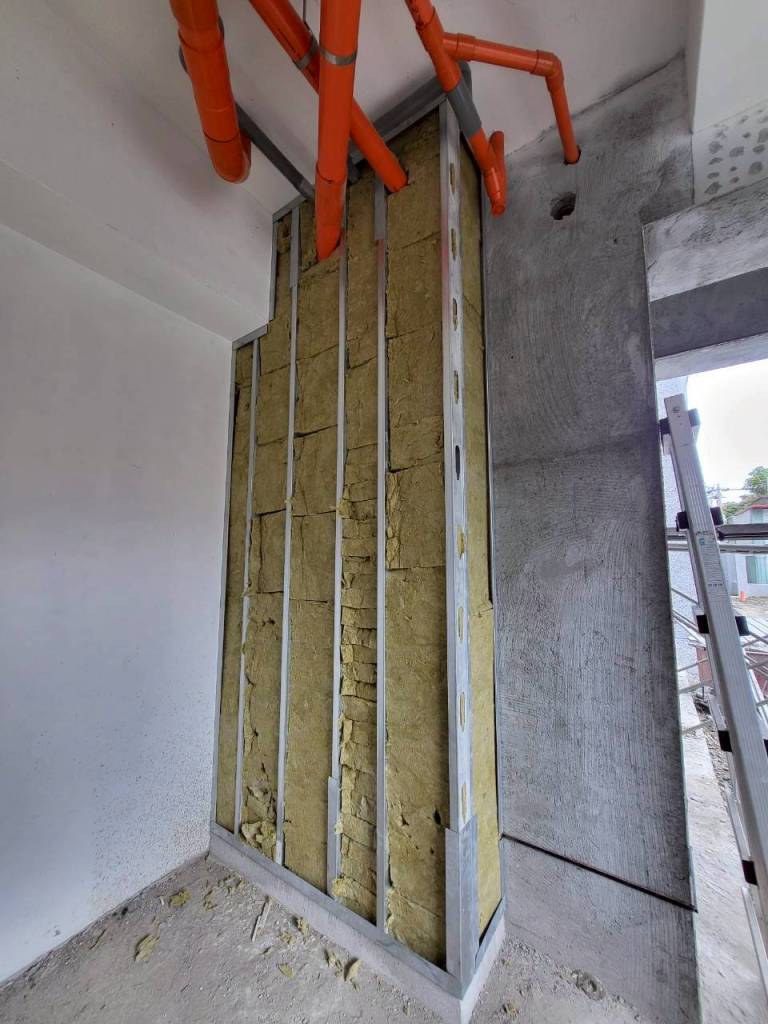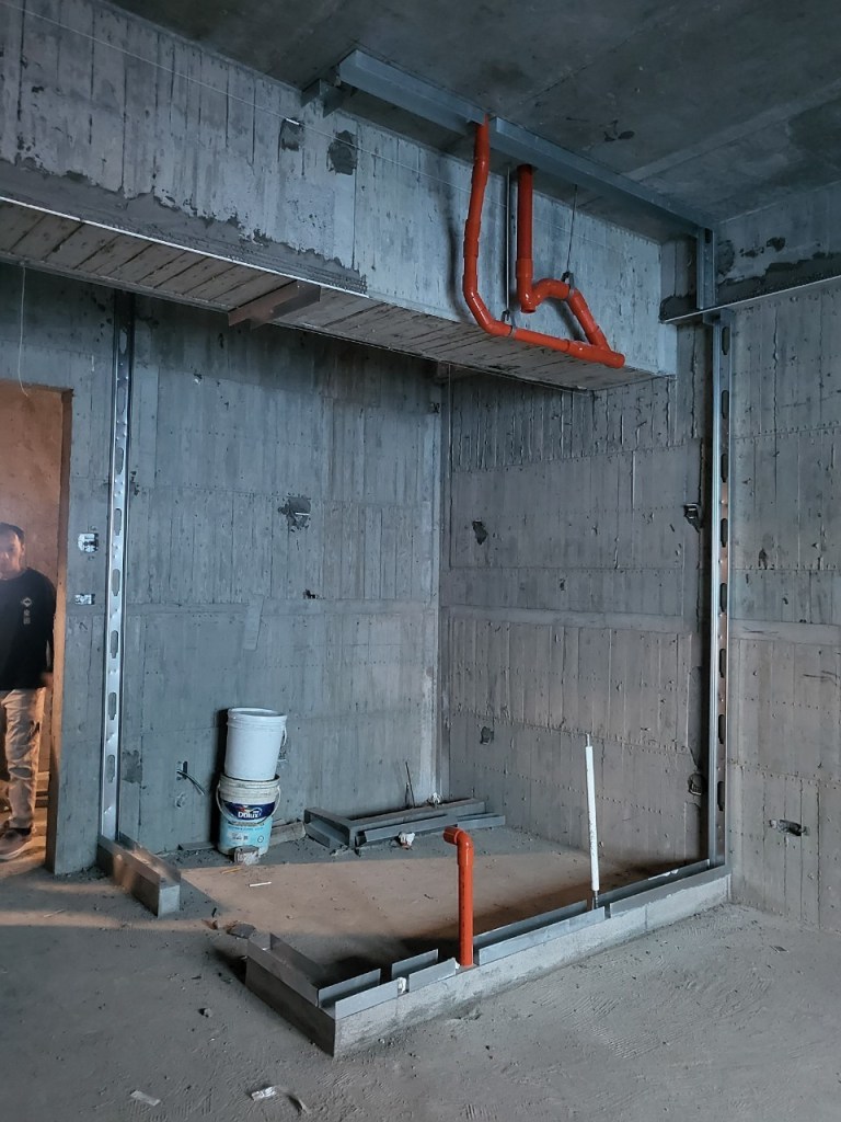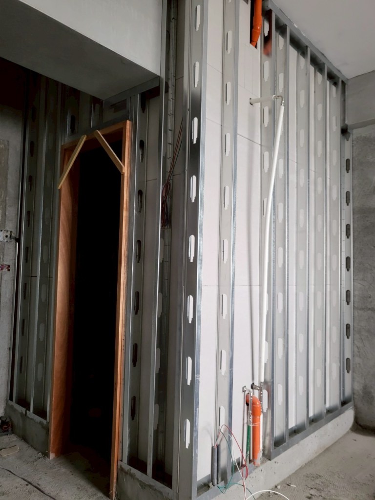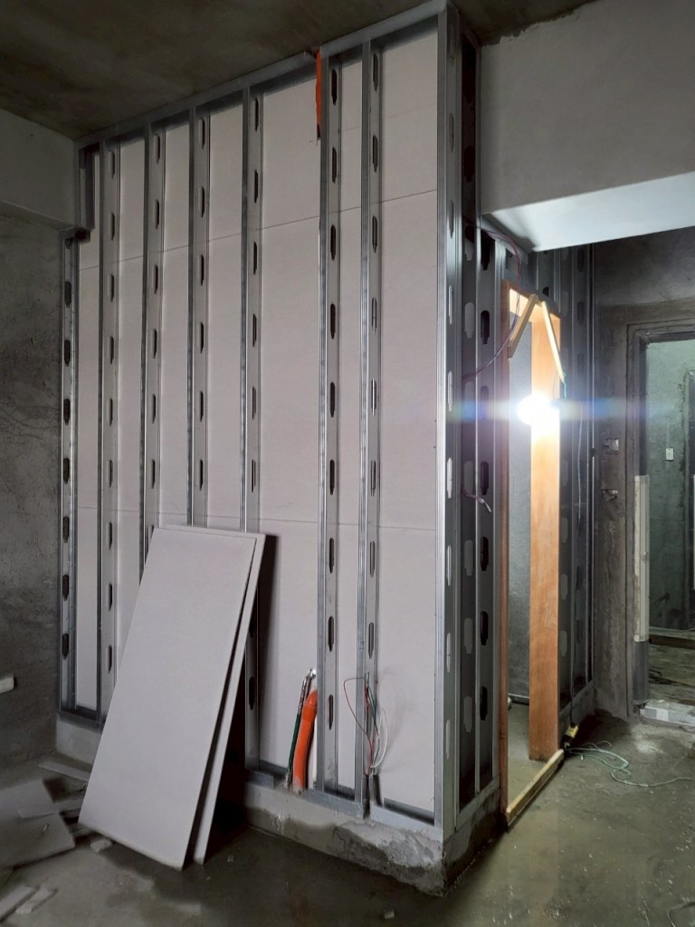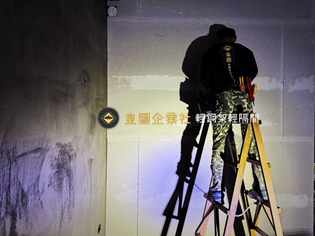 裝潢項目:防火隔間、溼式輕質隔間牆(輕質灌漿隔間/溼式灌漿隔間)、隔音隔熱防火棉、廁所暗架天花板