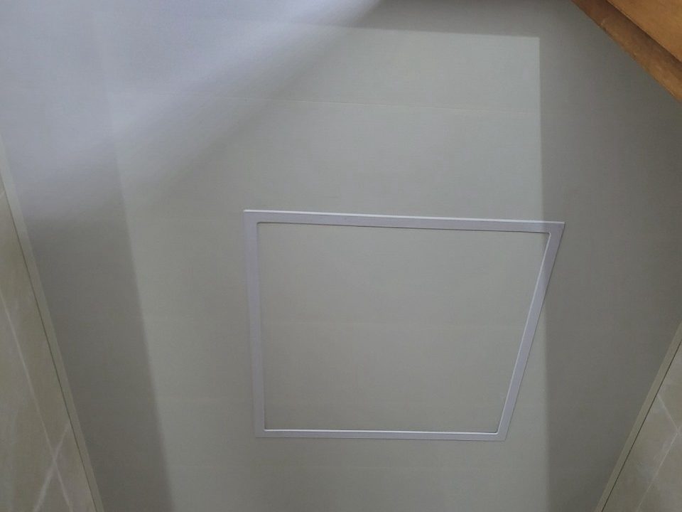 常見的維修孔類型是上掀式維修孔,這款式最為普遍較多人使用的樣式,是將板子向上推,暫放於天花板夾層空間,使用完再放回去孔洞蓋上。