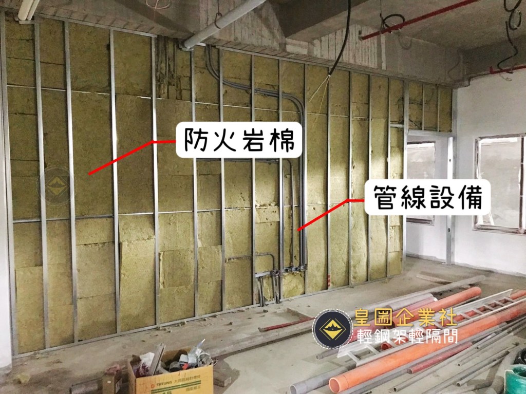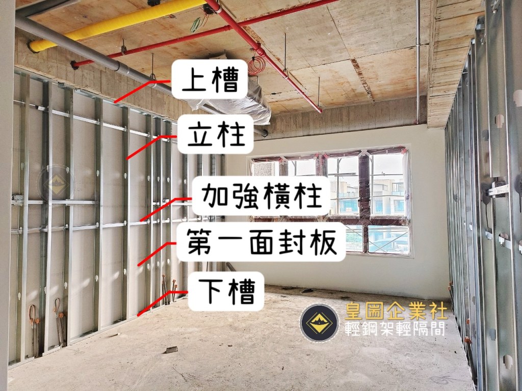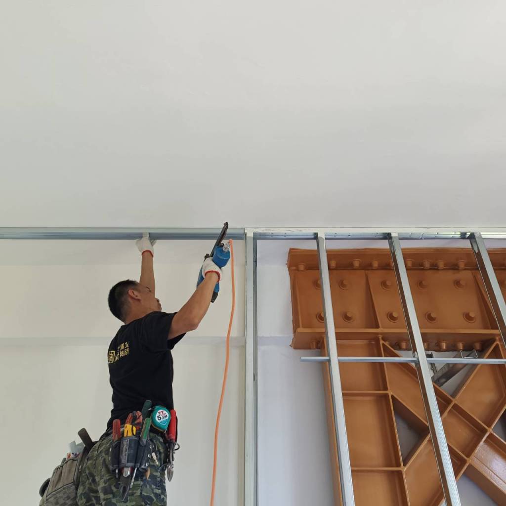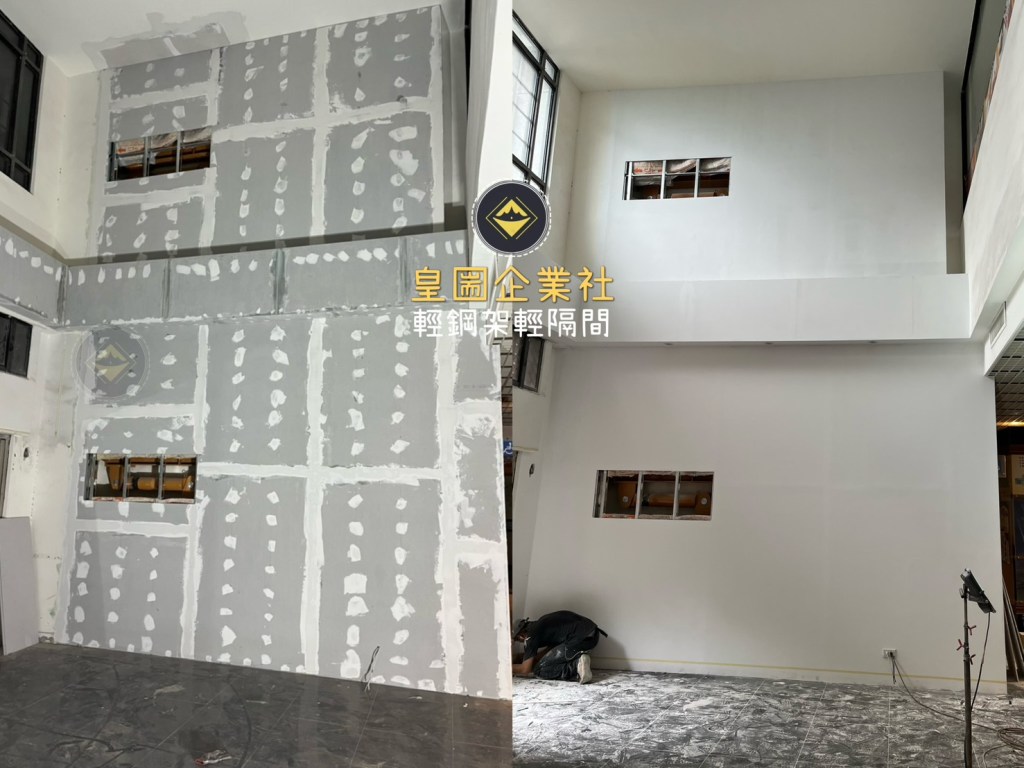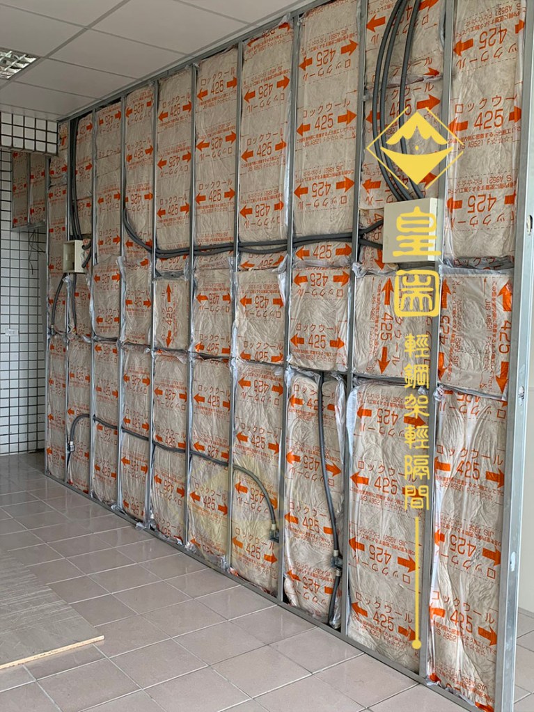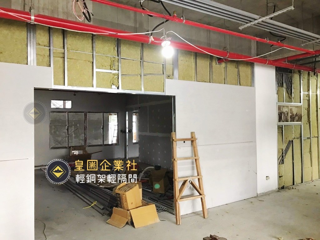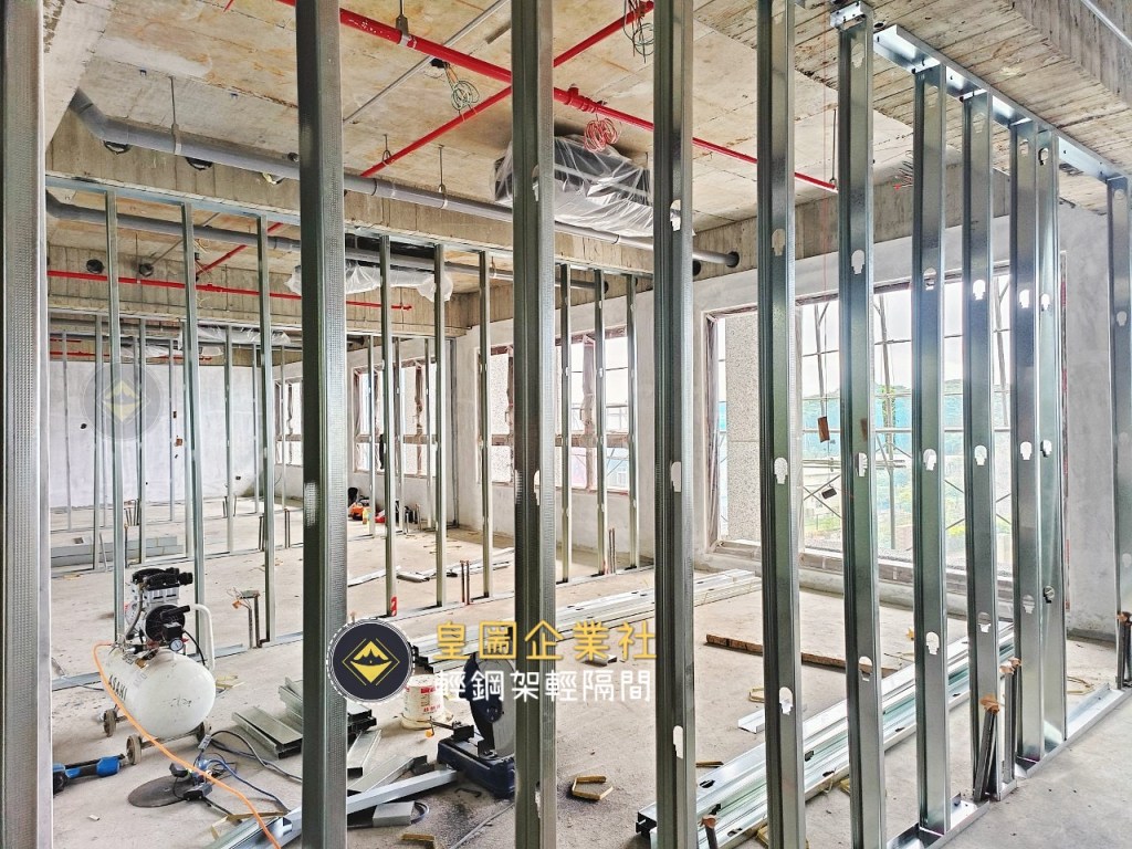 輕隔間主要以輕型鋼為骨架,搭配石膏板、矽酸鈣板等板材。